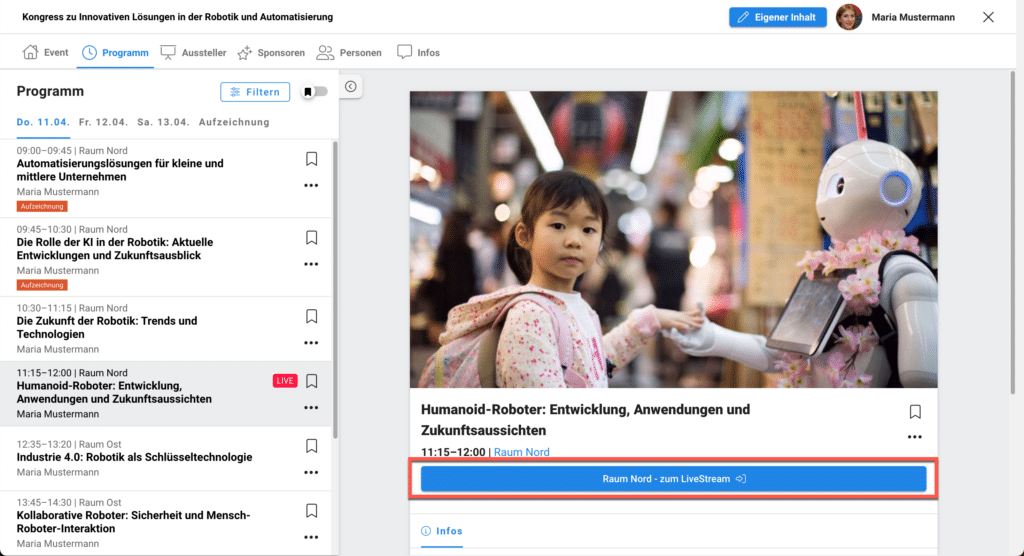 - Wählen Sie innerhalb des zummit Studios Ihr Event aus.