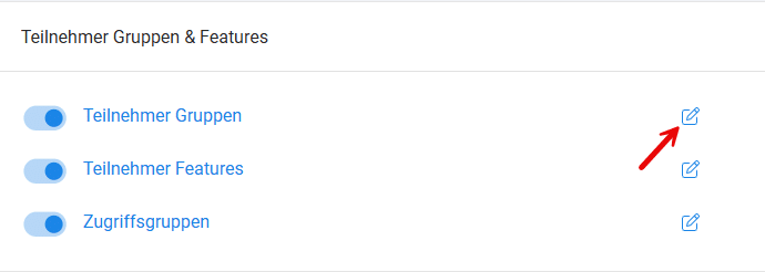 - Scrollen Sie zum Abschnitt „Teilnehmer Gruppen & Features“